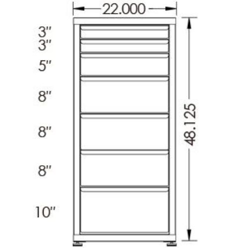 100# Capacity Drawer Cabinet, 3″,3″,5″,8″,8″,8″,10″ drawers, 49″ H x 22″ W x 21″ D
