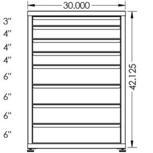 100# Capacity Drawer Cabinet, 3″,4″,4″,4″,6″,6″,6″,6″ drawers, 43″ H x 30″ W x 28″ D