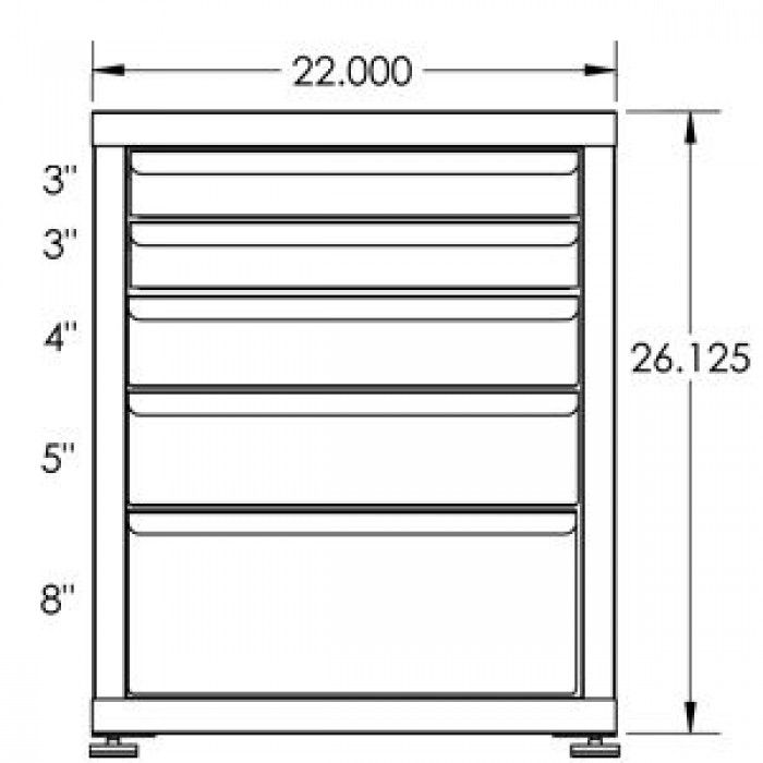 100# Capacity Drawer Cabinet, 5 drawers, 27″ H x 22″ W x 21″ D