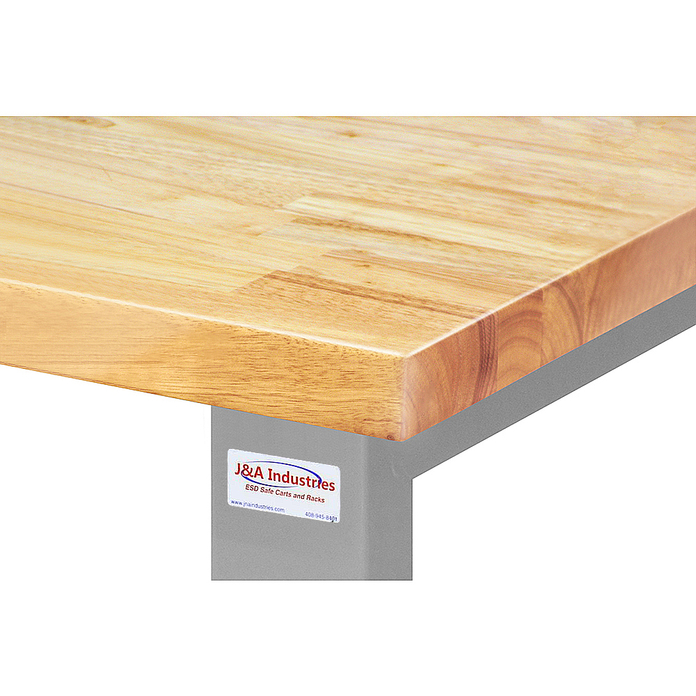 J&A receives the raw tops directly from the mill, then sizes and sands them, rounds the edges, and finally applies either an oiled or lacquered finish. While lacquer finished tops have a nicer appearance for offices, oiled finish tops are less expensive and can be resurfaced easily, making them better for high-use, production areas.